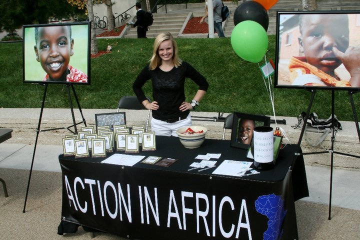 63648_1602837025495_1073160055_31456989_2327103_n Photo by: Sarah Nininger, Junior Sarah Nininger promotes “Action in Africa Week at Chapman.