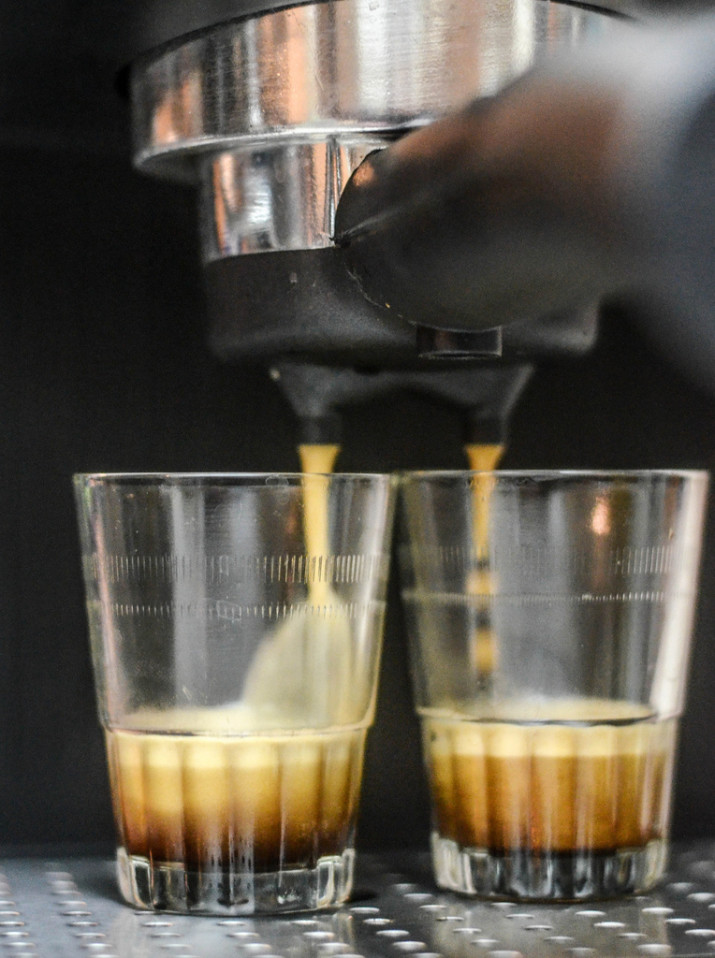 Junior Ashley Merda uses her personal espresso machine to make a vanilla latte before class. Photo by Sarah Purlee