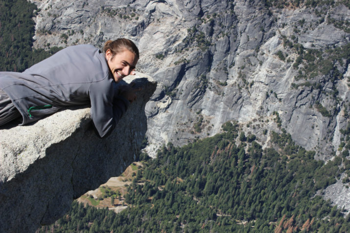 Doug Story 1 img-5 Baldridge peers over the edge at Half Dome’s summit in Yosemite National Park. Photo by Doug Close.