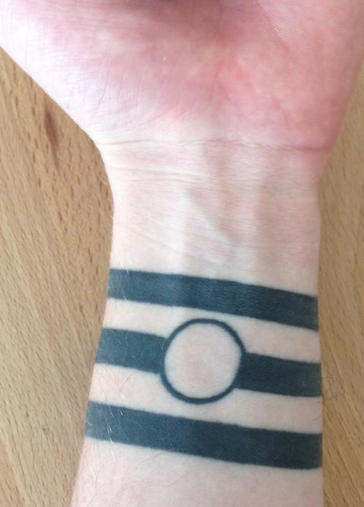 Clay Dirkse, a sophomore creative producing major, and his band and circle tattoo. Photo courtesy of Dirkse.