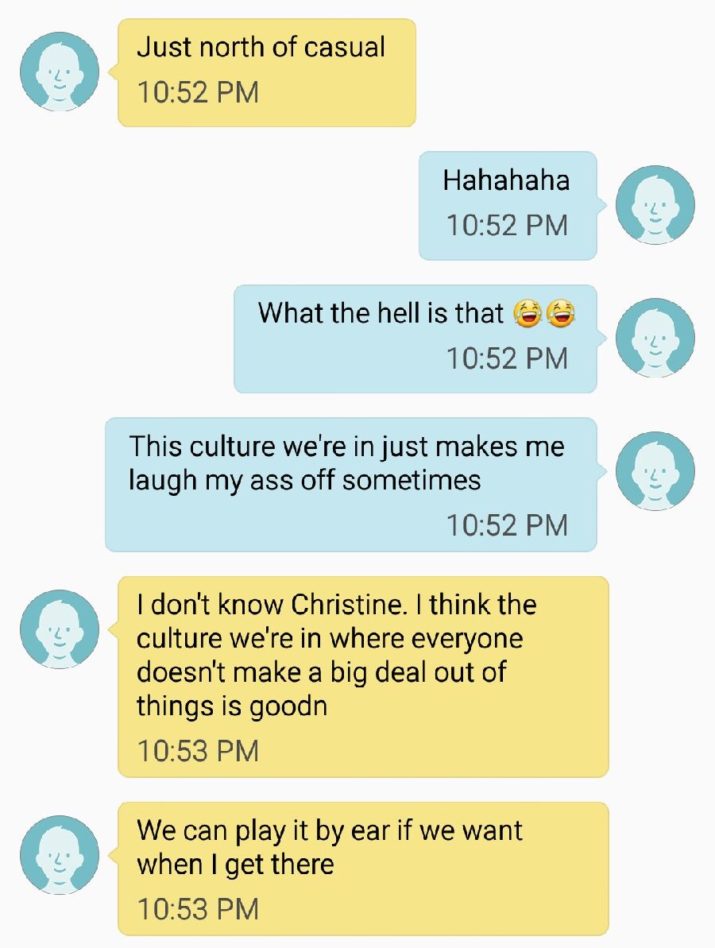 A text Christine Hughes, a junior screen acting major, received.