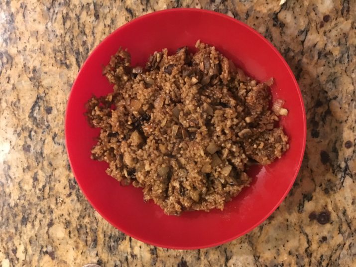 Sam Crainich, a senior film production major, prepared a vegan you fan (Taiwanese oily rice).