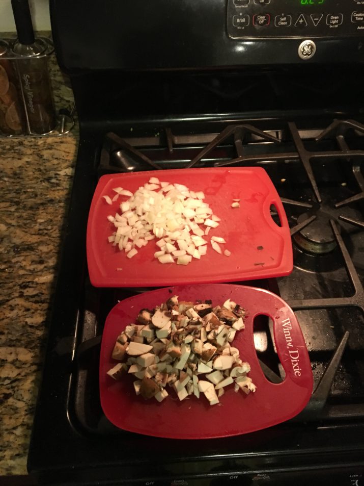 use-3 Sam Crainich, a senior film production major, chopped onions and mushrooms for a vegan you fan (Taiwanese oily rice).